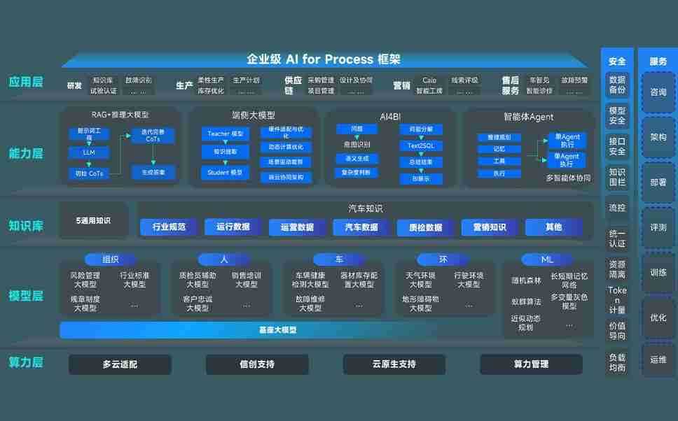 97622娱乐电子游戏问学智车解决方案是一套基于AI技术的汽车行业智能化系统,,覆盖从底层算力到顶层AI应用的全栈方案。。。方案由算力层、、、、模型层和应用层组成:算力层,,,方案支持多种一体机配置,,,具备云端灵活部署、、多云适配以及动态优化计算资源的能力;模型层,,97622娱乐电子游戏问学平台版提供了企业级AI应用一站式构建与管理平台,,,,支持基于后训练强化技术的汽车企业专属模型的训练、、、评测和运营;应用层,,,97622娱乐电子游戏问学DeepSeek版提供包括超级员工、、、智能招采、、、智能营销、、、智能客服、、、、AI for BI等一系列解决方案,,,,可助力汽车行业实现数字化转型,,,让管理更智能、、、响应更敏捷。。。
